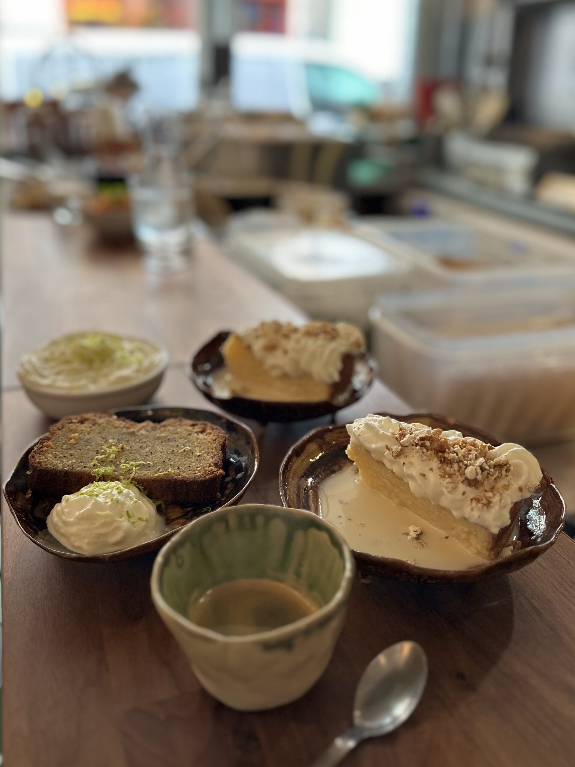 • Desserts : Churros traditionnels, Cinnamon rolls avec un glaçage au fromage et citron, Pastel de Tres Leches, Carlota de Limón…